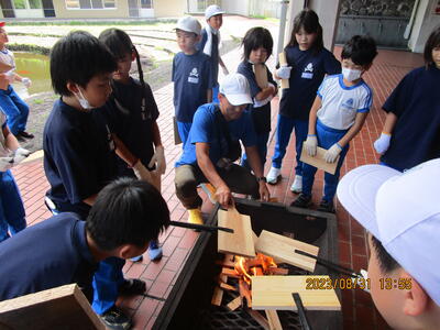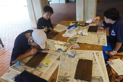 午後の活動の最初の活動は、「焼き板」作りでした。