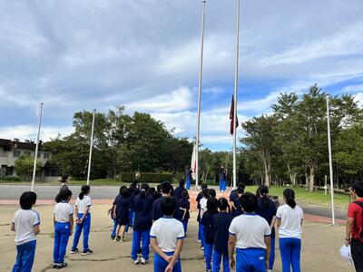 8月30日(水)の朝の時間に、全校集会を食堂で行いました。
