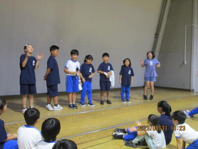 劇を行った6年生と劇を見た子どもたちに、感想を発表してもらいました。