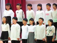 全校合しょうです。みんなできれいな声で歌えて