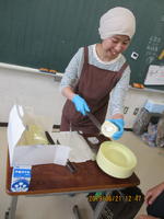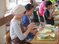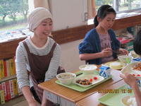 すると、「おいしい!」という声が次々にあがりました。やがて、おかわりをもらいに来る子ども達で、あっという間に行列ができました。デザートの「フルーツヨーグルト」もおいしかったようです。