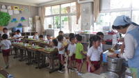 6月26日(水) 午前11時半頃、中畑幼稚園の年長組の皆さんが、中畑小学校の給食試食のため、来校しました。みんなとても礼儀正しく、元気にあいさつをしていました。
