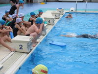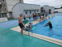 子ども達は、プールのそれぞれのコーナーに分かれて練習をしました。スタートにあたり、毎年お世話になる先生方に、元気にあいさつをしてたくさん練習に取り組みました。