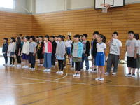しらうめ荘の体育館でなわとびをしたり、リコーダーをしたり、