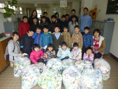 学校にたくさんのペットボトルキャップを届けてくれました。