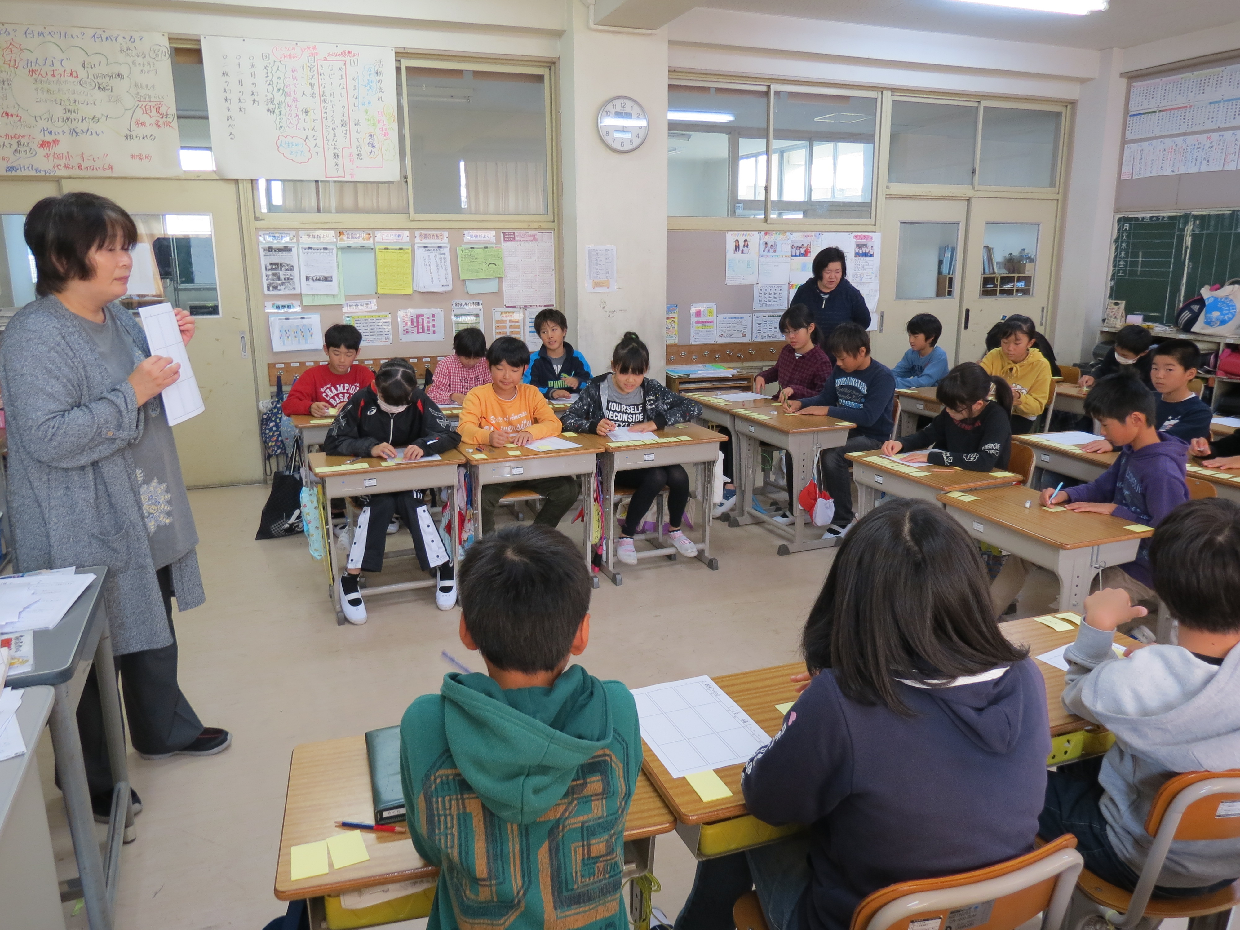 4年生は、札をじっと見つめながら、多く取ろうと真剣にそして楽しみながら学習することができました。