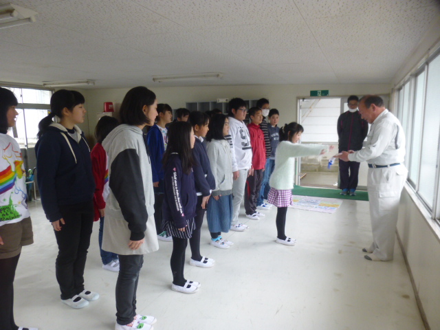 「中学校に行っても忘れないでね。がんばってね。」の励ましの言葉をいただきました。