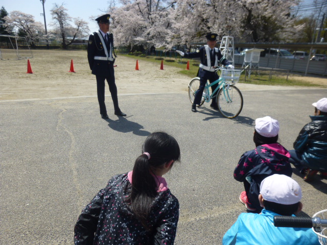 本日、2校時目に、白河警察署矢吹交番、矢吹町交通教育専門員の方々を講師に招いて、第1回交通安全教室を行いました。