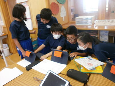 6年生が修学旅行の準備をしていました。修学旅行では会津若松市内で班別研修を行うため、各班ごとに行程を考えていました。飯盛山を起点にし、鶴ヶ城がゴールです。インターネットの情報と路線バスの時間を考慮しながら考えます。昼食の場所も自分たちで決めます。なかなか面白い旅になりそうです。
