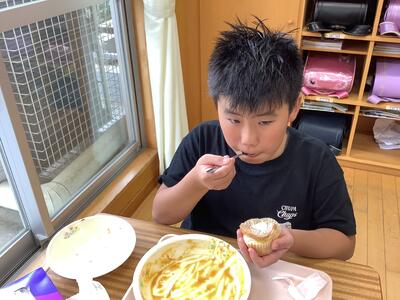 6年生では、町内の業者さんのご厚意により、美味しいケーキをいただきました。せっかくなので、お楽しみ会の後にいただきました。提供いただいた業者さんからは「矢吹の子どもたちが、笑顔で過ごしてほしい」との思いをお聞きし、地域の方々の支えを改めて強く感じた次第です。やっぱり子どもたちの笑顔が一番ですね。