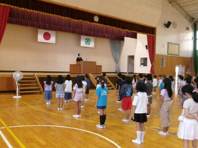 式では、校長から1学期の振り返りをし、2年、4年、6年の児童が1学期にがんばったことと2学期の抱負を発表し、それぞれの成果を確認することができました。努力が報われた子どもは多いと思います。それだけ、1学期の矢吹小の子どもたちはよくがんばりました。