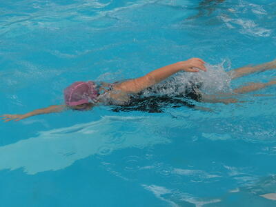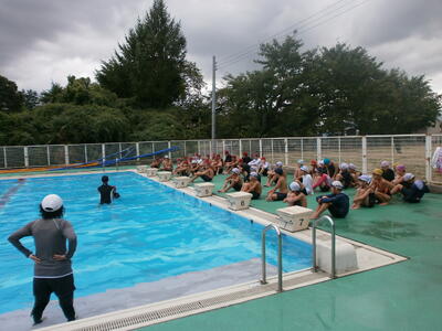 今日は、5・6年生の水泳学習を紹介します。5・6年生はそれぞれの技能にあわせ、伏し浮き・クロールを中心とした泳ぎ方指導を行っています。バディと組み、協力しながら練習しています。