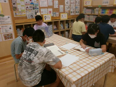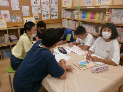 図書委員会では、来週から始まる図書ビンゴの準備とおすすめの本の紹介文を書いていました。