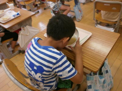 「ラーメン、美味しかったです」と答える子どもが多かったです。給食は塩分控えめで作っているので汁まで飲み干すことができます。