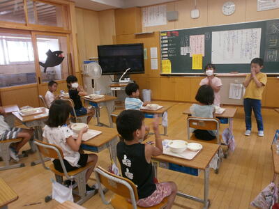 美味しい給食に満足した子どもたち。ごちそうさまでした。