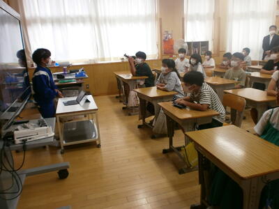 4年生が、生き物探しをしていました。夏になり、とんぼがたくさん飛ぶようになりました。子どもたちの中には上手につかむことができる子どももいました。ほかに様々な生き物がいる矢吹小。タブレットにたくさん撮影することができたようです。