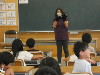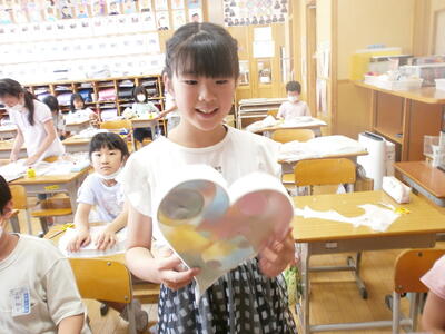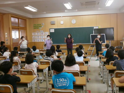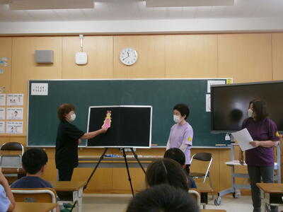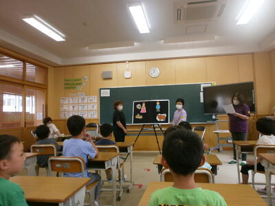7月13日に『おひさまおはなし会」が行われました。4名の皆様にお越しいただき、1・2年生に楽しいお話をたくさんしていただきました。