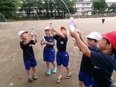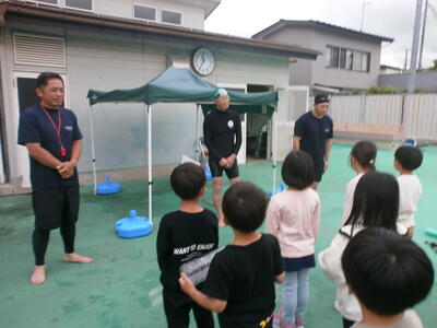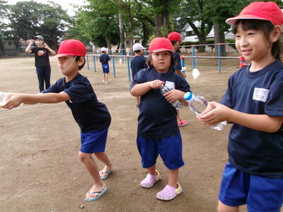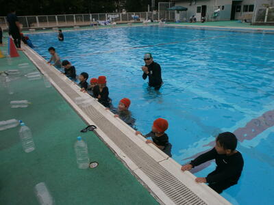 指導者の先生の話を聞きながら、洋服・ペットボトルを使用し、「ういてまつ」ができるようになった子どもが多いです。