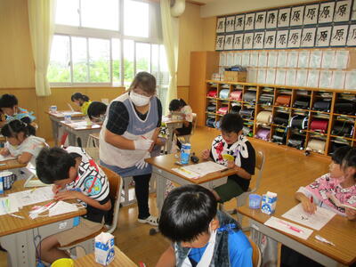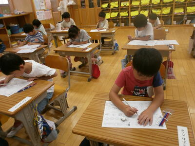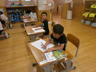2023年7月12日 15時30分1年生が、1学期に学習した内容をプリントで学習していました。小学校に入って3ヶ月。学習している姿も小学生らしくなりました。