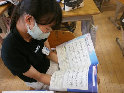 5年生は、歌のテストをしていました。一人一人が教科書の中の課題曲を歌っていました。テストということで緊張していたようですが、5年生はとてもきれいな声で斉唱ができます。今までの積み重ねですね。秋の音楽祭も楽しみです。