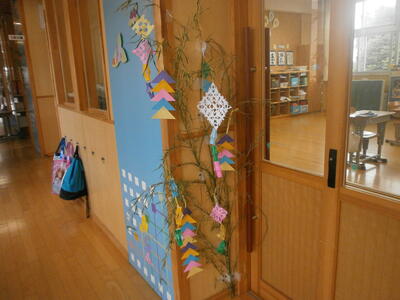 各学年に七夕飾りが飾ってあります。今日は7月7日、七夕です。