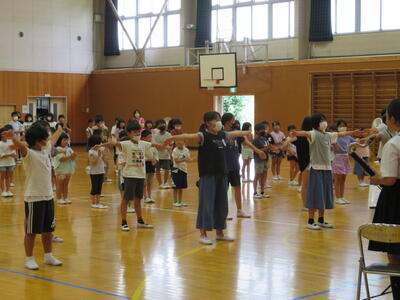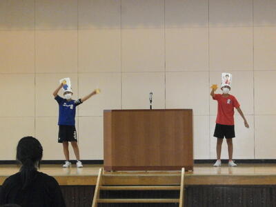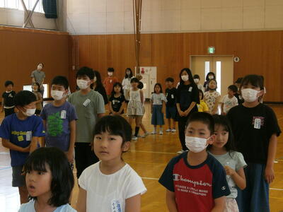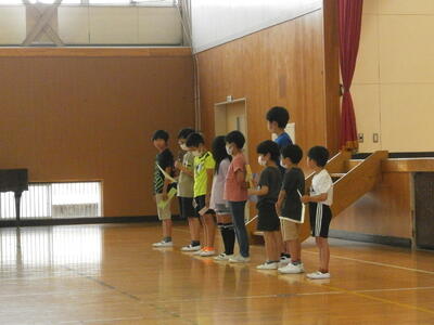 毎日の練習の成果を発揮できることを願い、5年生が中心になりエールが送られました。