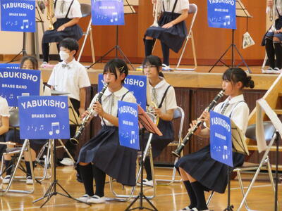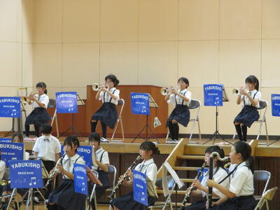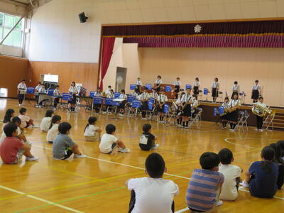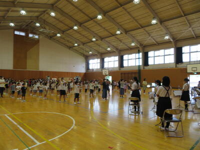 7月10日の全校集会で、7月16日に行われる県吹奏楽コンクール県南支部大会へ参加する吹奏楽部の壮行会が行われました。