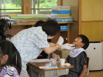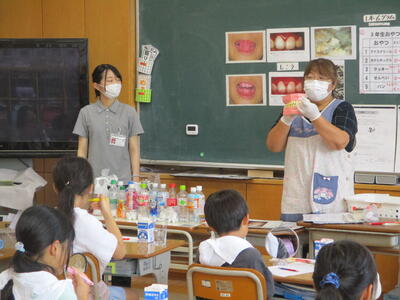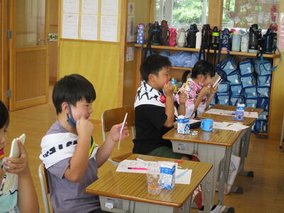 7月10日に3・4年生の歯科指導を実施しました。講師の先生方にむし歯になりやすい食べ物やむし歯にならないための正しい歯の磨き方を丁寧に教えていただきました。当日は、福島医大看護学部の学生にもご協力いただきました。ありがとうございました。