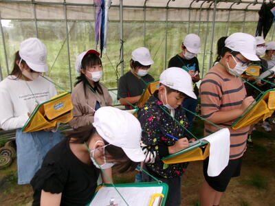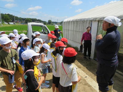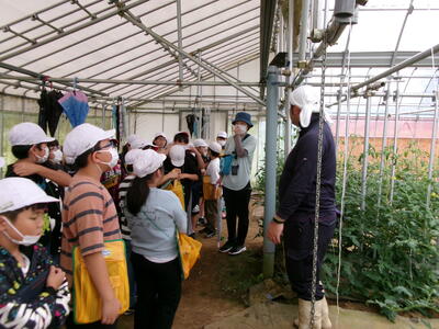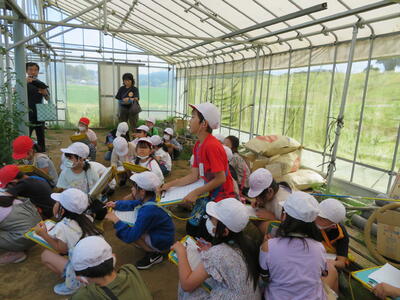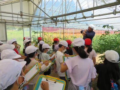6月16日に5年生、19日に3年生が、矢吹町のトマト農家(青木さん宅)に見学に行きました。