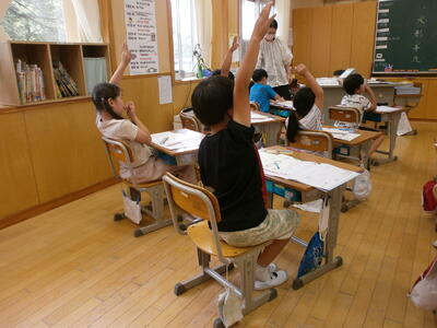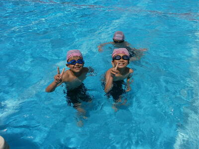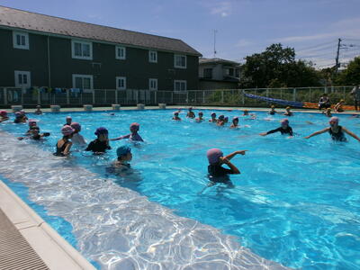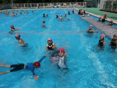 子どもたちが笑顔で呼びかけてくれます。プールで見られる笑顔は水の輝きと重なってとてもきれいです。水泳学習はいつも歓声があがります。楽しく学習できるのはいいことです。