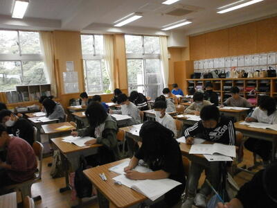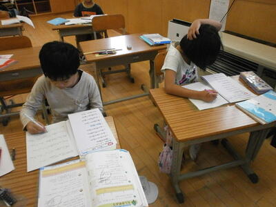 2年1組では、算数の学習で学んだ長さについて、ドリルやプリントを使って学んだことの習熟を図っていました。やはり、問題をこなしながら理解を深めていかなければなりません。2の1の子どもたちは、意欲的に取り組んでいました。ちょっと難しいことも乗り越える強さを身につけてほしいですね。