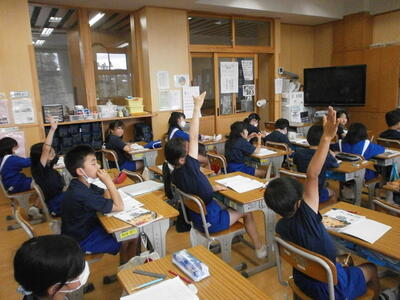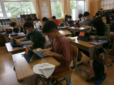 2023年5月29日 11時30分6年教室からはカタカタカタとタイピングの音が…。