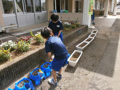 複数の学年で植物を育てていますが、それぞれどんどん大きくなっています。