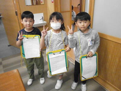 今日は、1年生の学校探検の日です。以前、2年生に案内をしてもらいながら学校探検をしましたが、今日は、1年生だけの探検です。職員室や校長室、保健室やその他の教室を回っていました。