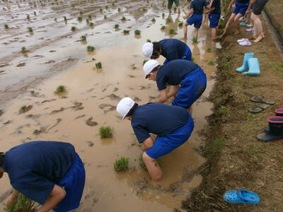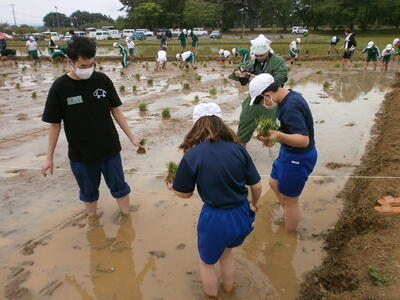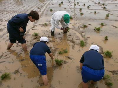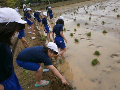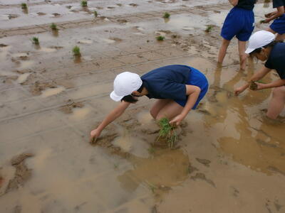 今日は、5年生が「田んぼの学校」に行ってきました。2反歩の田んぼに矢吹小・善郷小・中畑小の5年生が集まり、一斉に田植えを行いました。最初は田んぼに入ることをためらう子どももいましたが、1回入れば土とお友達です。みんな手際よく田植えをすることができました。貴重な経験ができた5年生です。秋の収穫体験が楽しみですね。