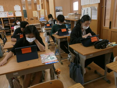 今日の3校時は、タブレットを使ってスララドリルやタイピングゲームをしていた6年生。静かな中にキーボードをうつ音だけが聞こえる時間でした。それにしても、子どもたちのタイピングの速さにびっくりしました。”習うより慣れろ”とはまさにこのことかもしれません。