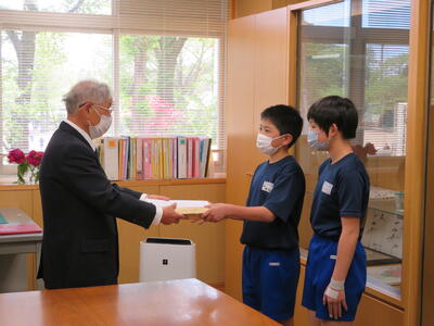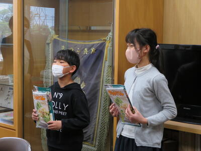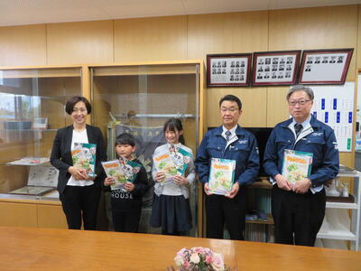 今日は、JA東西しらかわの皆様にお越しいただき、雑誌「ちゃぐりん」の贈呈式を行いました。5年生の2名が学校の代表としてちゃぐりんをいただきました。代表者の感想を聞くと、「ちゃぐりんの漫画のページが好きです」「最後の食のページを楽しみにしています」とのこと。大好きなちゃぐりんを今年も各学級で大切に読んでいきましょう。