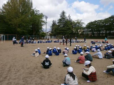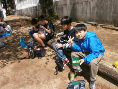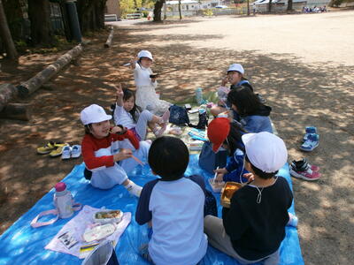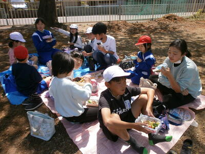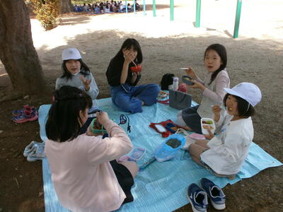 今日は、久しぶりに★やっぴいなかよしランチ★の時間がありました。1年生を迎える会に続き、縦割り班でお弁当を食べました。天気にも恵まれ、広い校庭でみんなで食べるお弁当は「おいしい!!」の一言につきるようです。にこにこ笑顔がたくさん見られました。