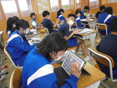 6年生は、外国語の学習で英語で自己紹介をしていました。ただし、ただの自己紹介ではありません。タブレットで自分の好きなもの、苦手なものが分かるシートを作成し、みんなで共有する活動も行っていました。タブレット使いもお手の物。さすが6年生です。