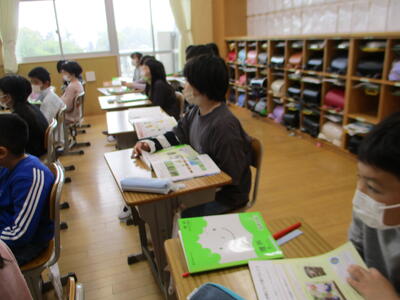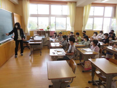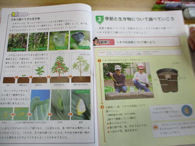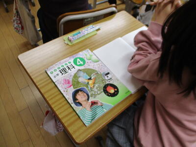 4年生は、教務の先生と一緒に理科の学習をしていました。今は、植物の生長について学んでいます。先日、ほうせんかのタネをまいたそうです。昇降口付近で優しく水をあげている姿が見られ、心の美しさを感じました。早く芽が出るといいですね。