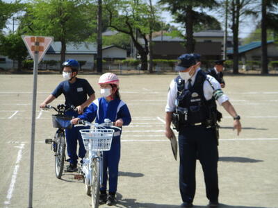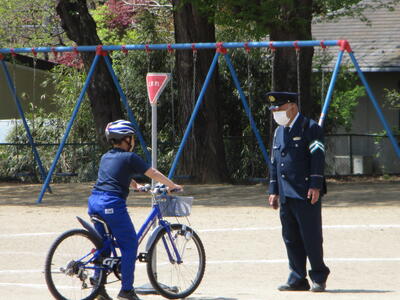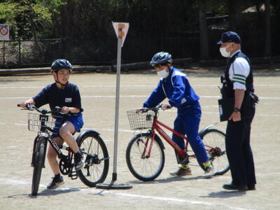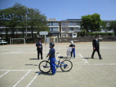 今日は、5・6年生の交通教室でした。昨日に引き続き、警察署員様、交通教育専門員様をお招きし、自転車の乗り方についてご指導いただきました。