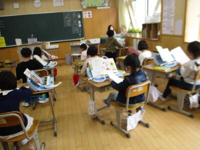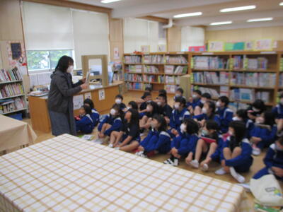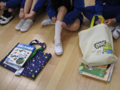 3年生が、学校司書の先生に読み聞かせをしていただいていました。みんな静かに本の世界に浸っていました。すてきな時間ですね。一人一人が持っていたバックには本がたくさん。本好きがたくさんいて嬉しいです。今日は家読の日。ぜひお家でも本の世界に浸ってください。