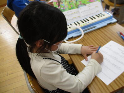 ♩ソミミ ファレレ♩…2年生が、『ちょうちょ』の楽譜に階名を書いていました。楽譜が読めると自分で演奏ができます。2年生も、鍵盤ハーモニカで演奏をする予定です。すてきな音楽が奏でられるといいですね。楽しみです。
