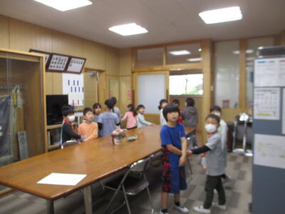 校長室に「失礼します」と入ってきたのは1・2年生のみんなでした。1年生は手作りのメダルをつけ、2年生がエスコートをしながら学校探検をしていました。