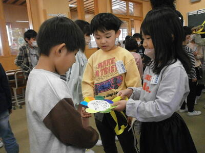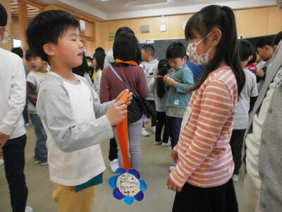2023年4月27日 12時30分校長室に「失礼します」と入ってきたのは1・2年生のみんなでした。1年生は手作りのメダルをつけ、2年生がエスコートをしながら学校探検をしていました。