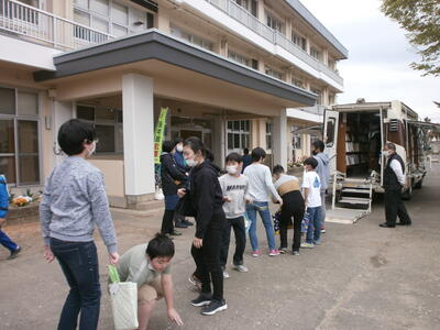 今年最初のよむよむ号は、4月12日に来校しました。係の方にお伺いしたところ、矢吹小の子どもたちはたくさん借りてくれるとお褒めの言葉をいただきました。確かに、急ぎ足でよむよむ号に向かう姿がたくさん見られました。これから毎月来校してくださるとのことですので、楽しみにしていましょう。