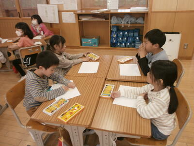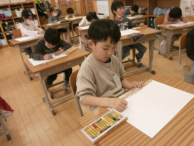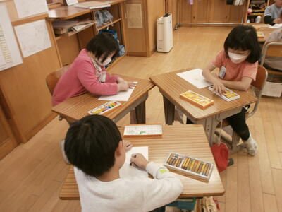 2年生は、自分たちのすきなものを絵に描いていました。「温泉に入ったことを描こう」「スカイツリーを見に行ったことにしようかな」「いちごを食べた自分を描こう」など、それぞれの好きなものをクレヨンで楽しそうに描いていました。できあがりが楽しみです。