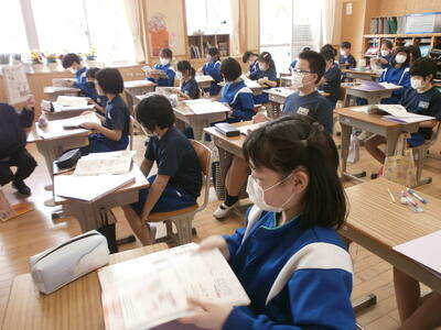 6年生は、1年生を迎える会をどのように行うかを話し合っていました。前には司会者が立ち、班で話し合いをした後、全体で方法を考える形をとっていました。自分で考え、みんなで決める。自治的活動ができている6年生。1年生を迎える会、よろしくお願いします。