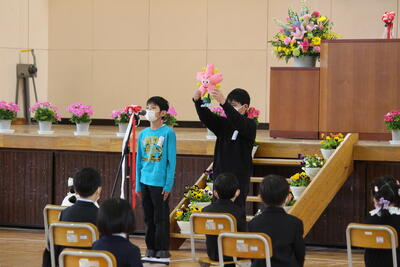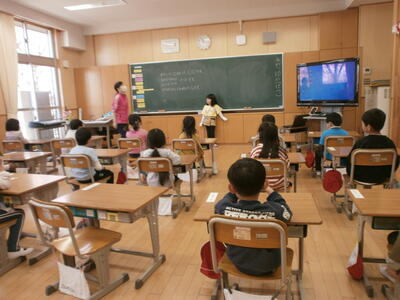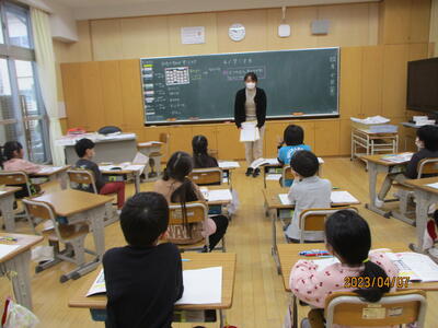 1年生の教室を参観すると、一人一人が自己紹介をする時間でした。自分の名前とすきな(とくいな)もの、最後に「よろしくお願いします」のあいさつを添えて、自分のことをみんなの前で話していました。堂々とした態度は立派です。1年生、素晴らしい姿がたくさん見られます。