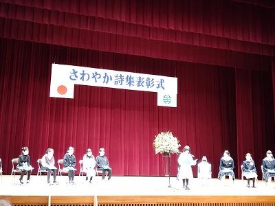 1月29日(日)に、矢吹町のさわやか詩集表彰式が行われました。本校からは、最高賞の大滝清雄賞、その次のさわやか大賞など、たくさんの賞を受賞しました。詩集は、全校児童に配付されました。